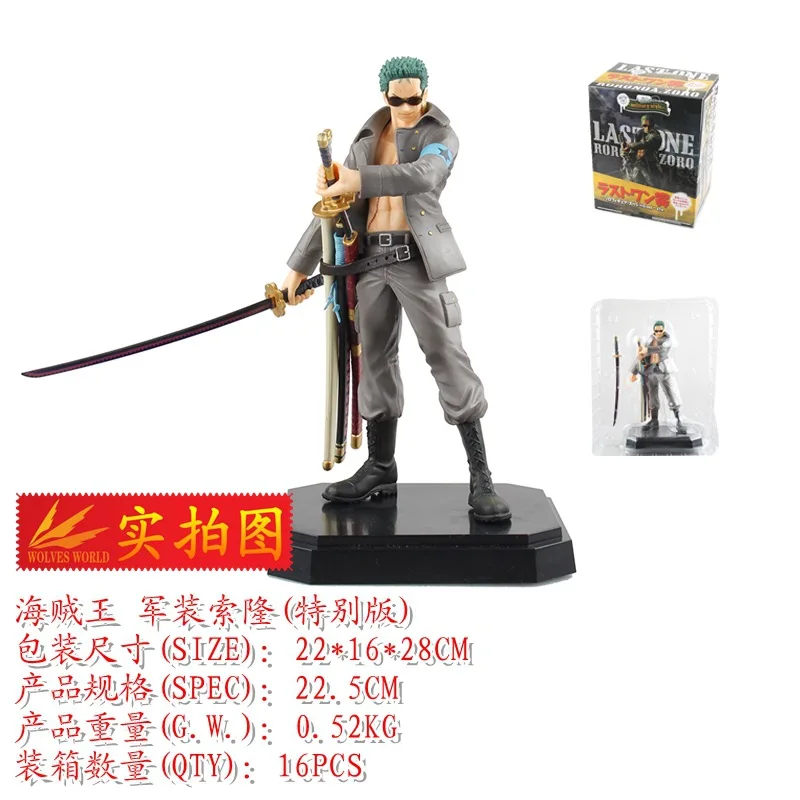 Addition Information of Action Figure One Piece Zoro PVC 22cm Roronoa Zoro Military Style Onepiece dolls Army installed Collectible Model anime
